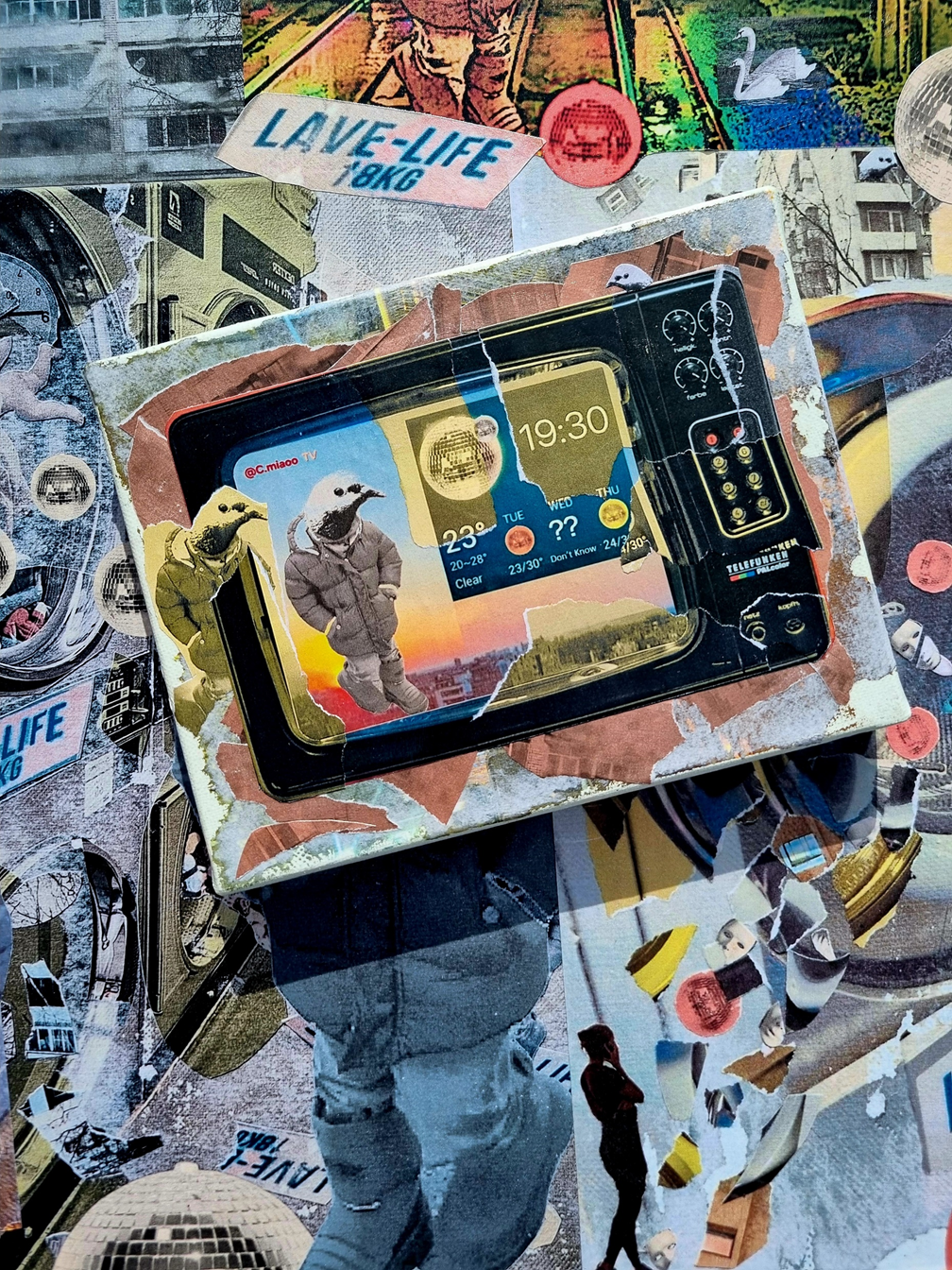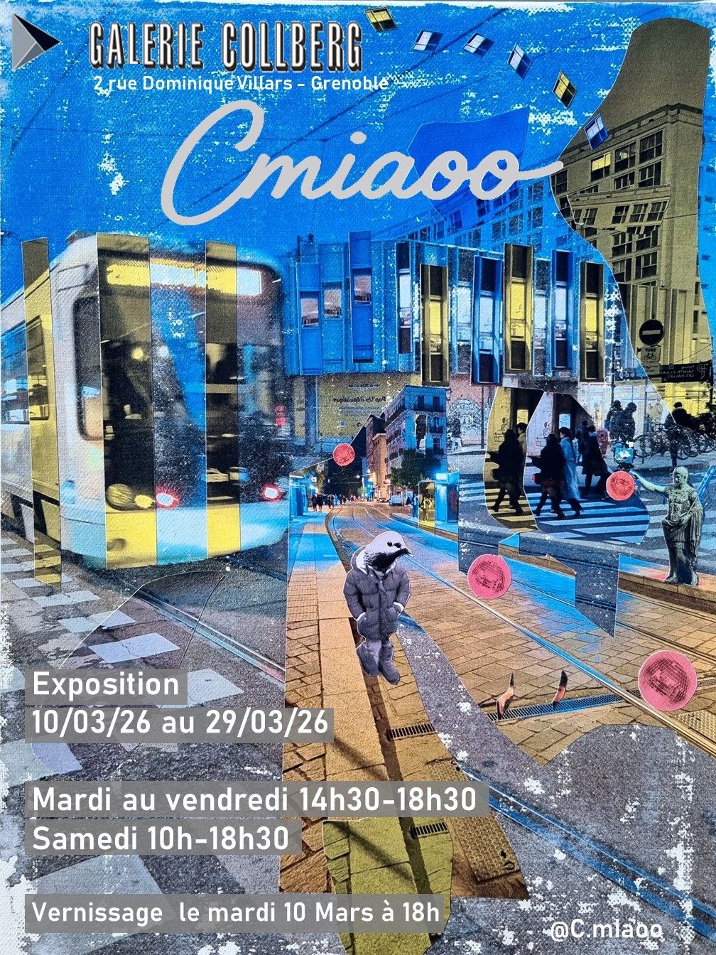 Exposition Print Paste-Up Exposition Exposition d’une série de collages à la galerie Collberg (Grenoble). Print Des prints encadrés au format 30×40 sont disponibles à la vente sur demande. Paste-Up Past-ups réalisés dans l’espace urbain, entre collage, affichage et détournement d’image. Contact: contact@cmiaoo.fr Instagram